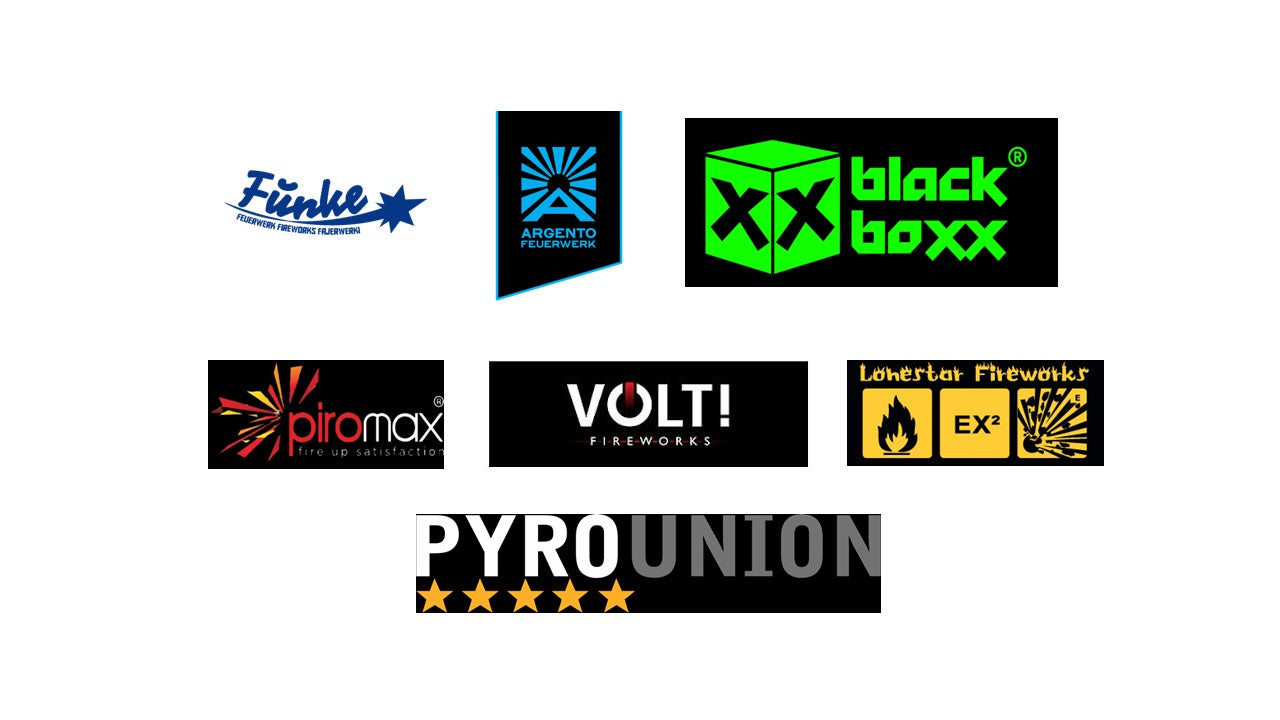Funke, Argento, Albert Feuerwerk, Blackboxx, Piromax, Volt Feuerwerk, Lonestar Fireworks, Pyrounion.