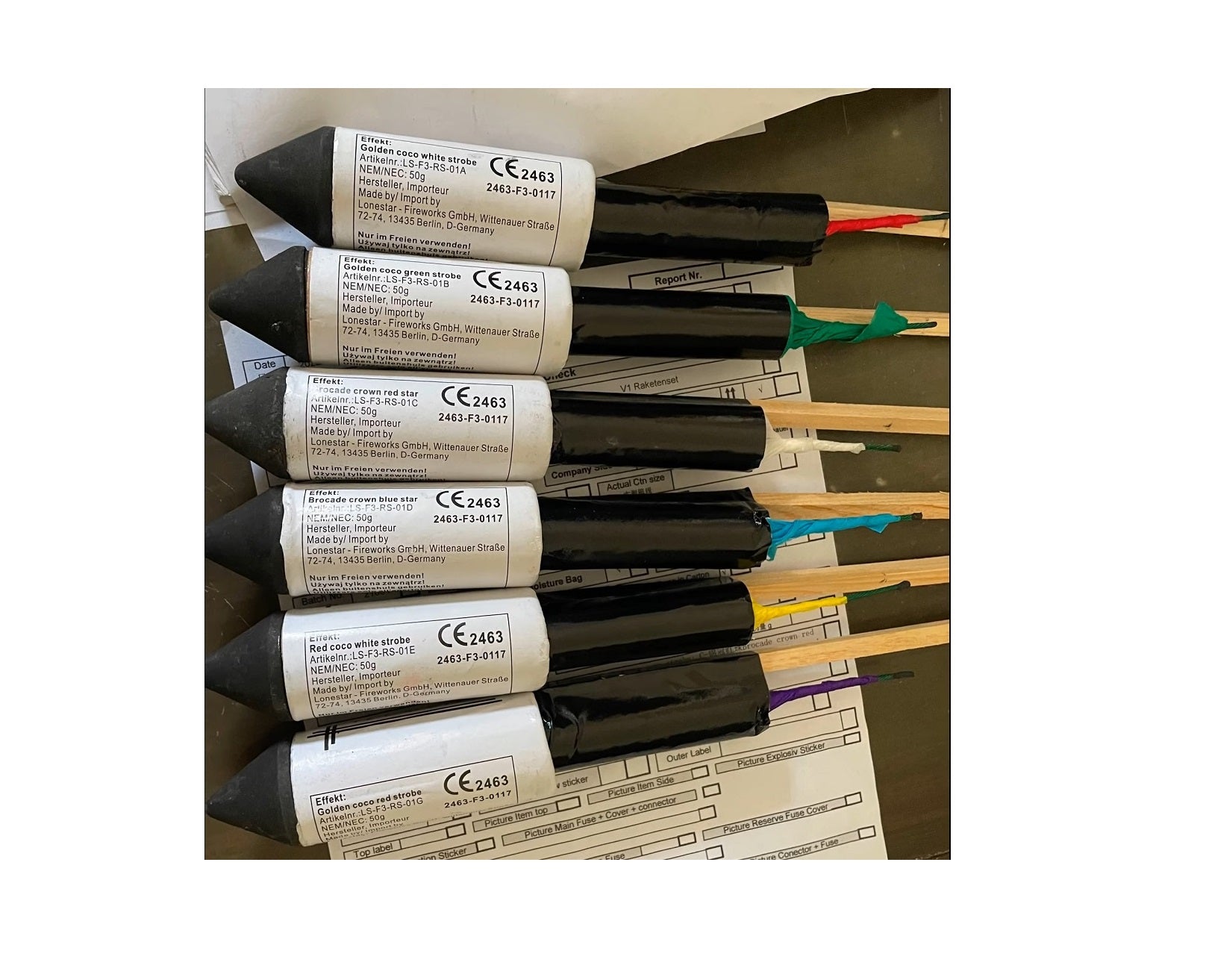 F3 Raketen aus dem Hause Lonestar, 1 Paket enthält 6 Raketen mit je 50 g NEM.