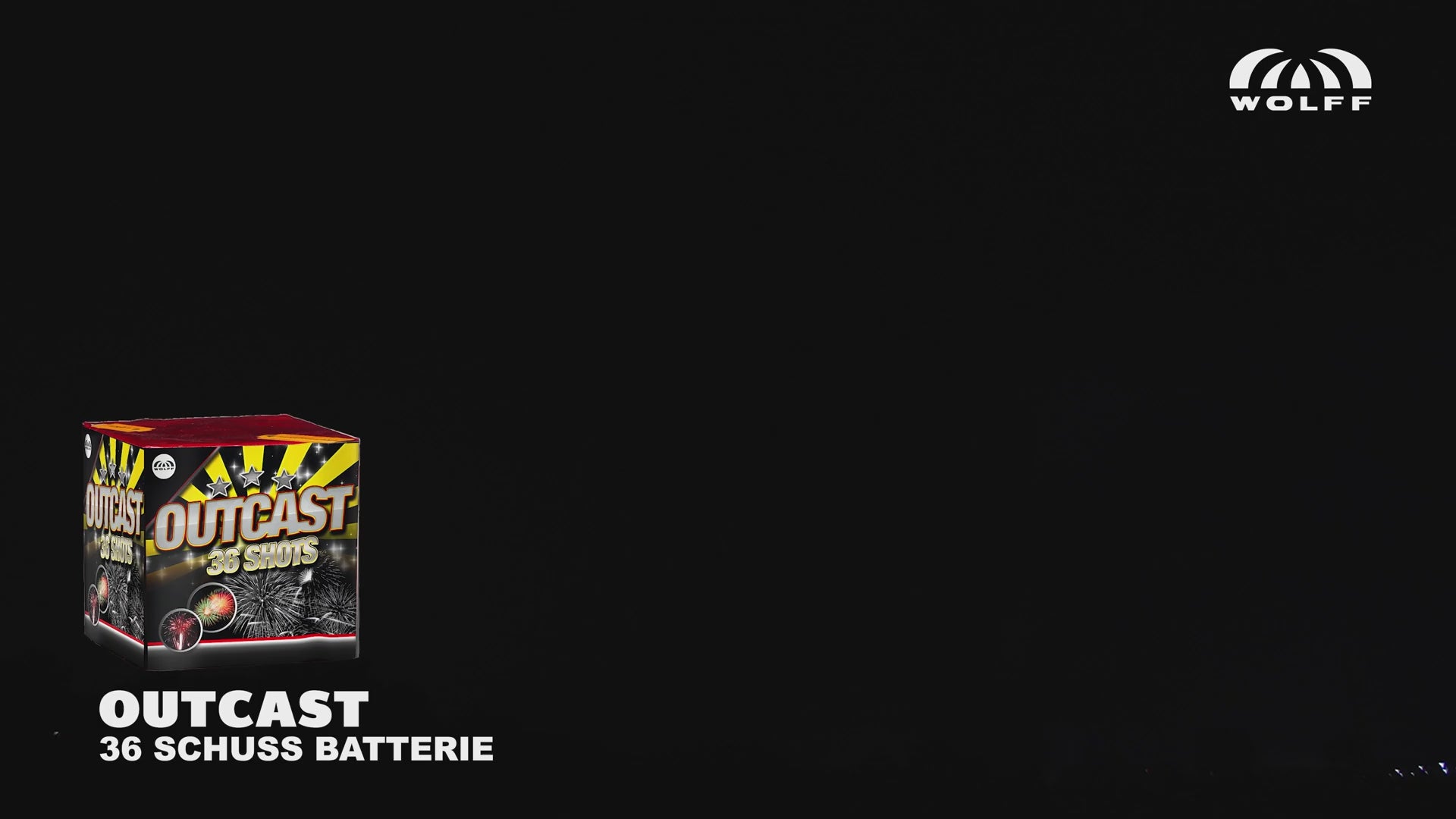 Die Wolff Outcast bietet 36 Schuss mit einem Kaliber von 25 mm und einer Laufzeit von 33 Sekunden. Als Effekt entfalten sich im Himmel Brokatkronen mit Blinkersternen gefolgt von Crackling und einen schönen Crackling Finale.
