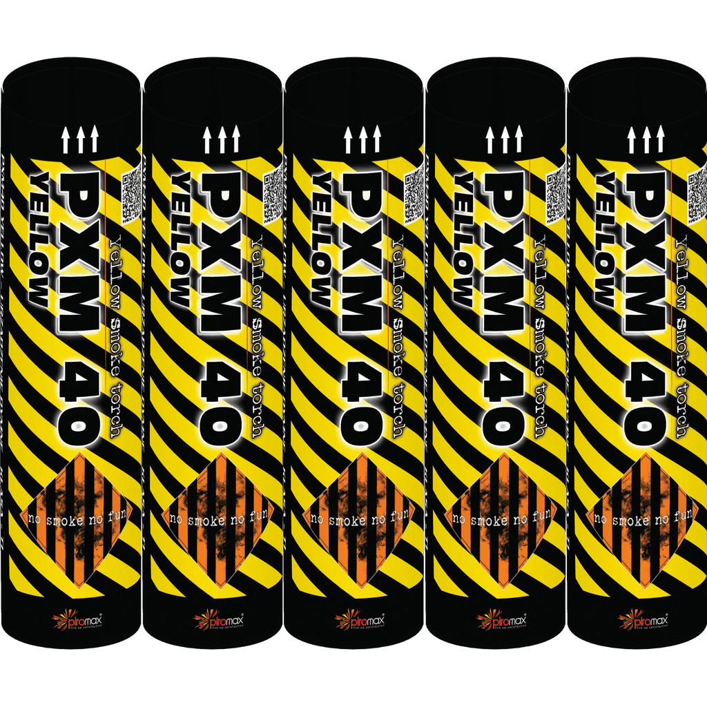 Rauchfackel von Piromax, welche 70 Sekunden gelben Rauch erzeugt.